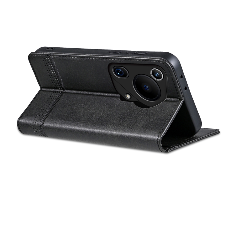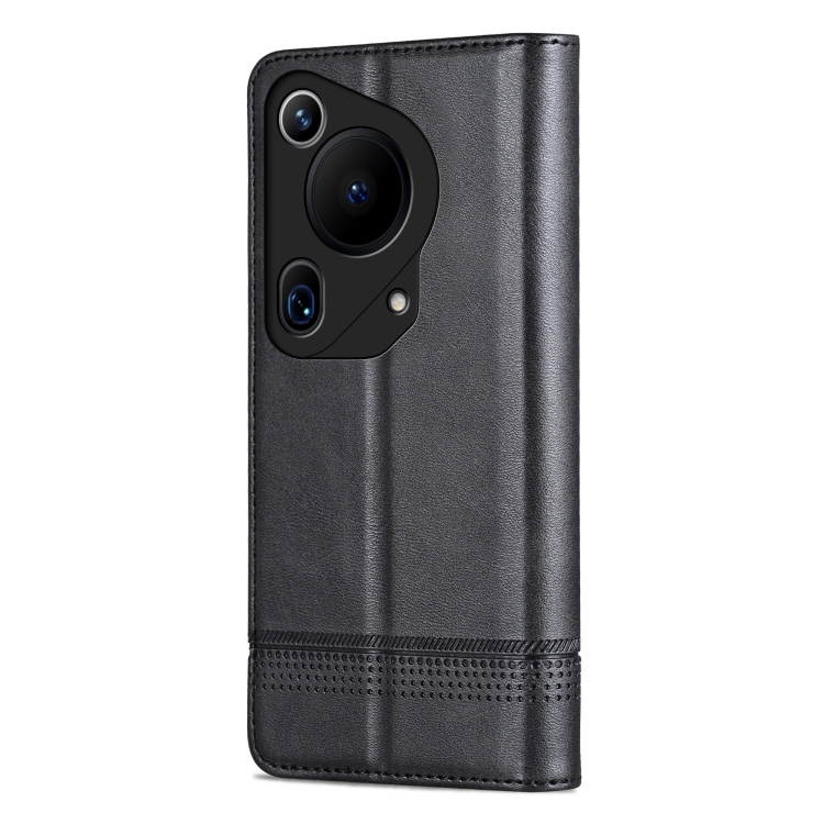 Funda para Huawei Pura 70 Ultra Azns de Cuero con Tapa Magnética y Textura de Pantorrilla (Negro)