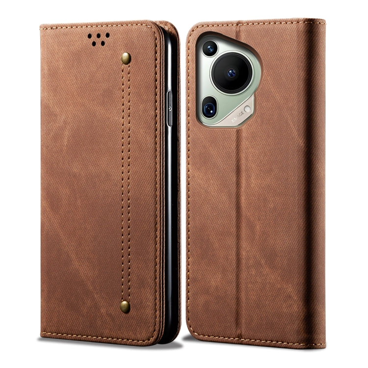 Funda de Cuero para Huawei Pura 70 Ultra con Textura Denim (Marrón)