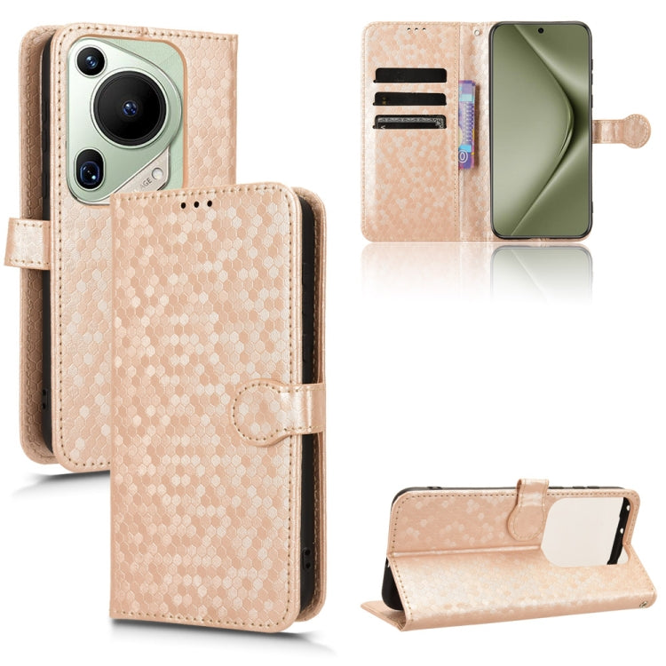 Funda de Cuero Huawei Pura 70 Ultra Honeycomb Dot Texture para Teléfono (Dorado)