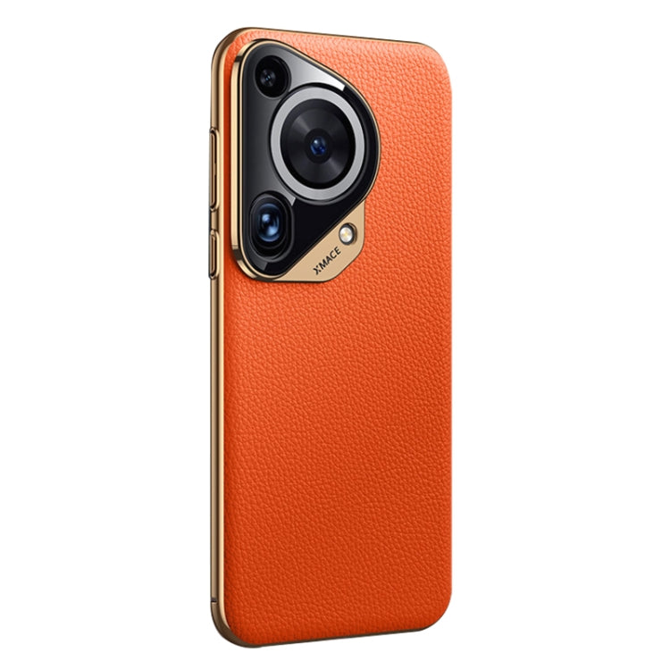Funda de Cuero Genuino para Huawei Pura 70 Ultra con Textura Litchi (Naranja)