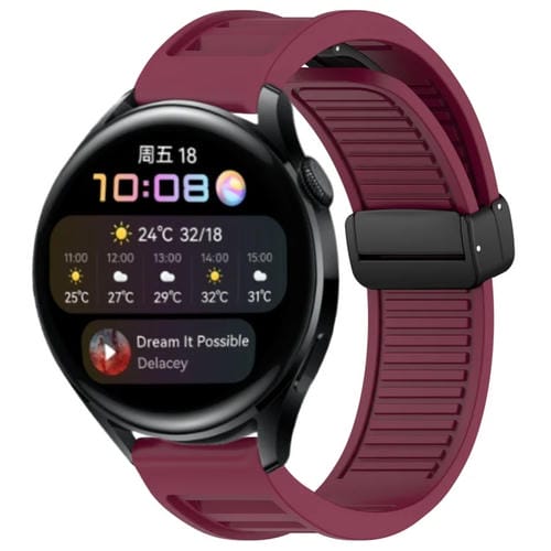For Huawei Watch 3 Silicone Watch Band with 22mm Folding Magnetic Buckle (Wine Red)