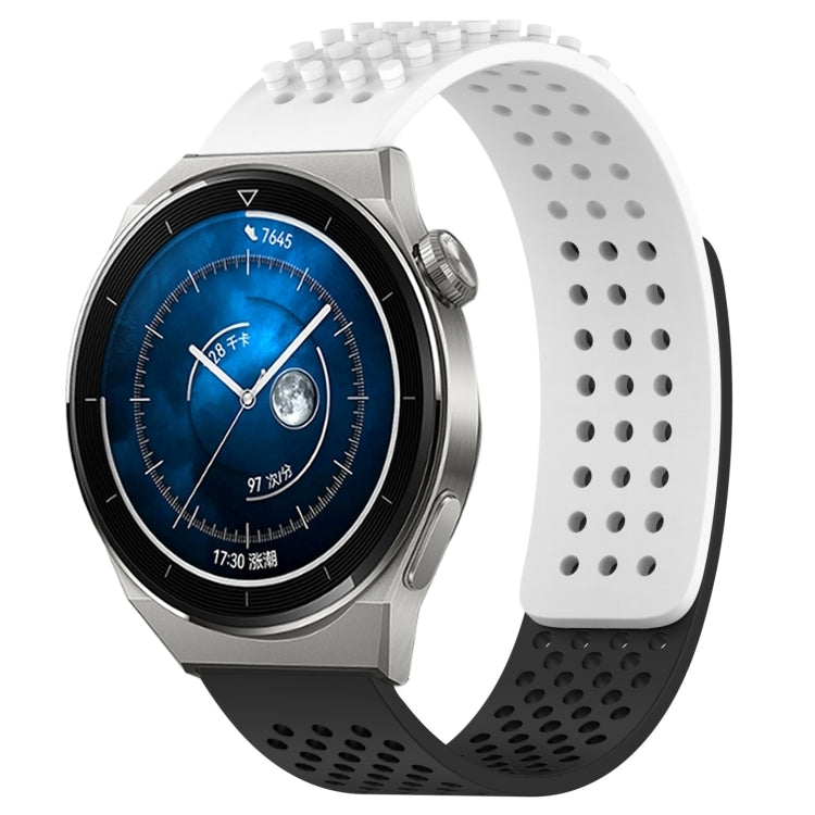 Correa de Silicona para Huawei Watch GT3 Pro 43mm 20mm Agujeros Transpirable Puntos 3D (Blanco + Negro)