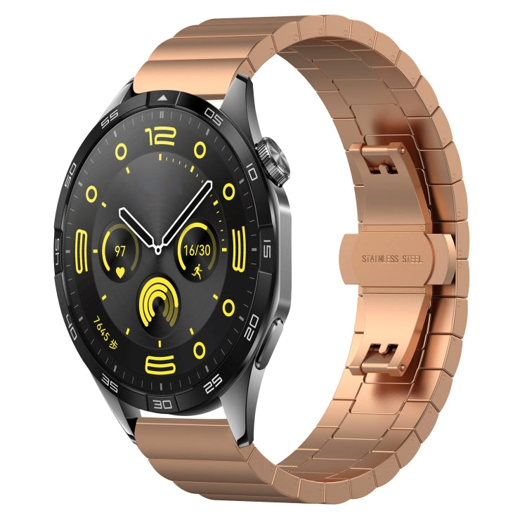 For Huawei Watch GT4 46mm Stainless Steel Metal Watch Band with One Bead Butterfly Buckle(Rose Gold)
