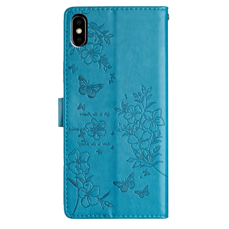- 1x Funda para Huawei Y5 2019 de Cuero con Relieve de Flor y Mariposa (Azul)