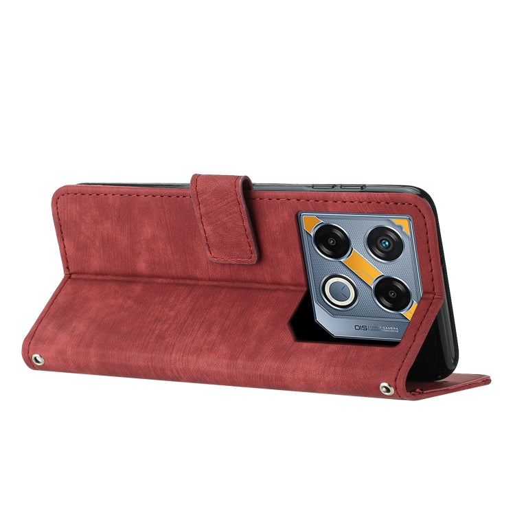 Funda de Cuero Skin Feel para Infinix GT 20 Pro con Patrón de Rayas y Cordón (Rojo)