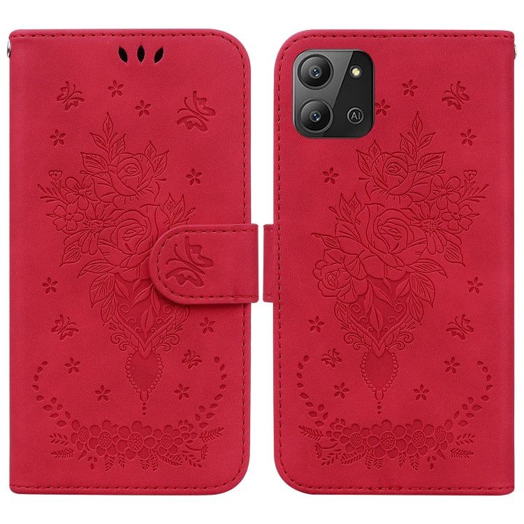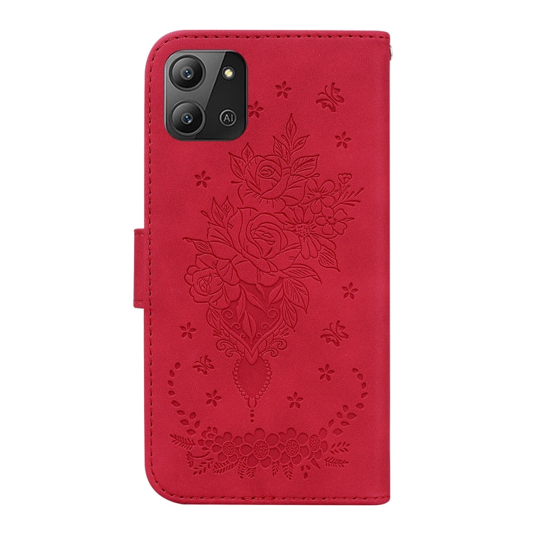 Estuche para Teléfono Infinix Hot 11 2022 Butterfly Rose Cuero En Relieve (Rojo)