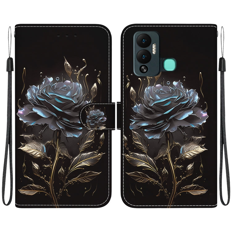 Estuche de Cuero para Infinix Hot 12 Play con Dibujo Coloreado y Textura de Cristal (Rosa Negra)