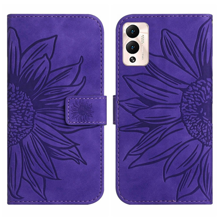 Funda de Cuero Flip para Infinix Hot 12 Play con Cordón y Diseño Sun Flower (Púrpura Oscuro)