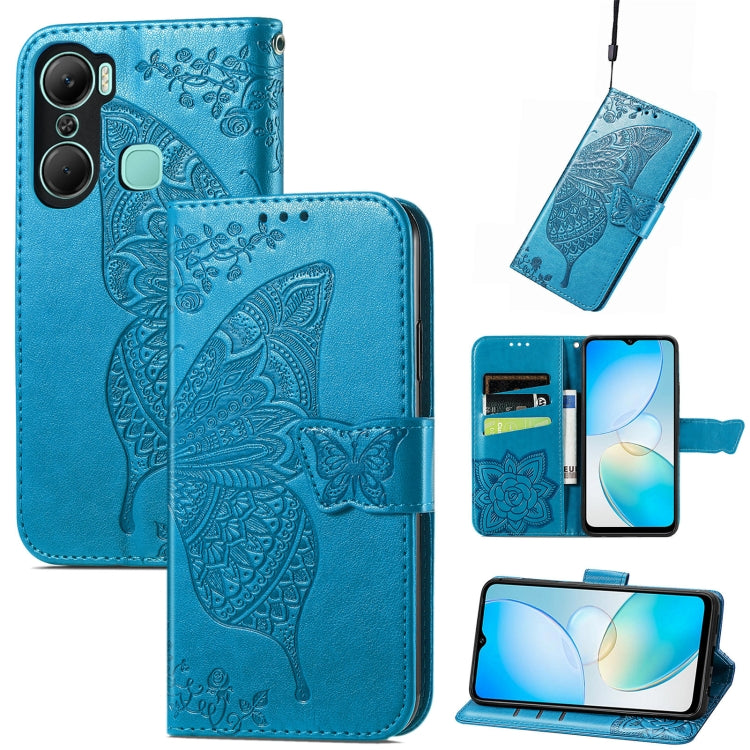 Estuche para teléfono Infinix Hot 12 Pro Butterfly Love Flower Cuero en Relieve (Azul)
