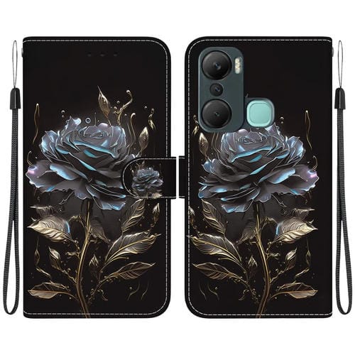 Funda de Cuero para Infinix Hot 12 Pro con Dibujo Coloreado y Textura de Cristal (Rosa Negra)