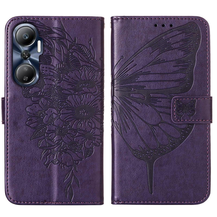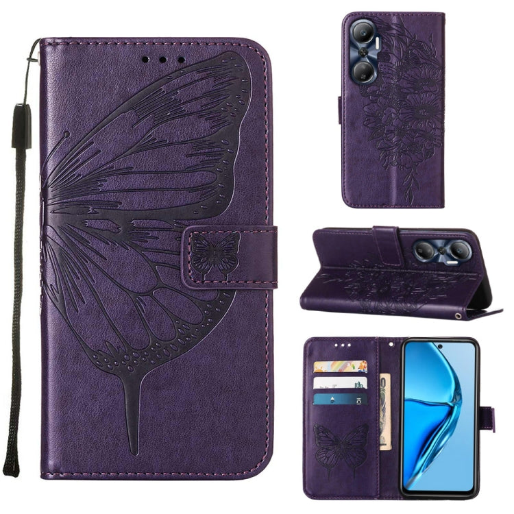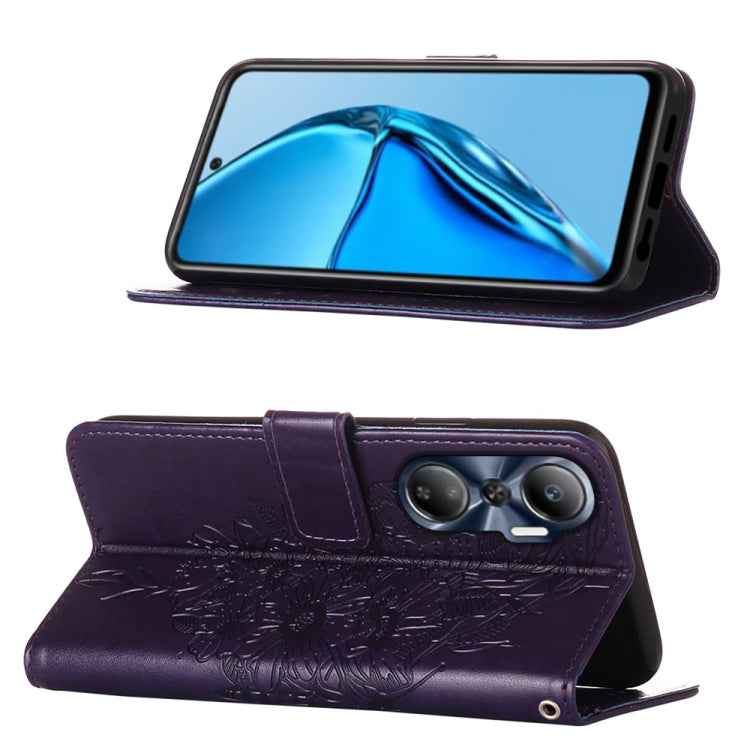 Estuche de Cuero para Infinix Hot 20 4G X6826 con Tapa de Mariposa en Relieve (Púrpura Oscuro)