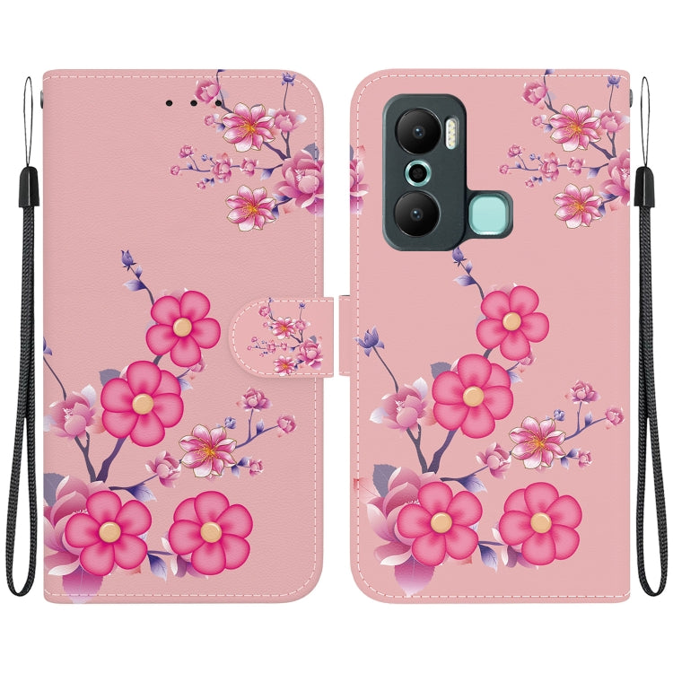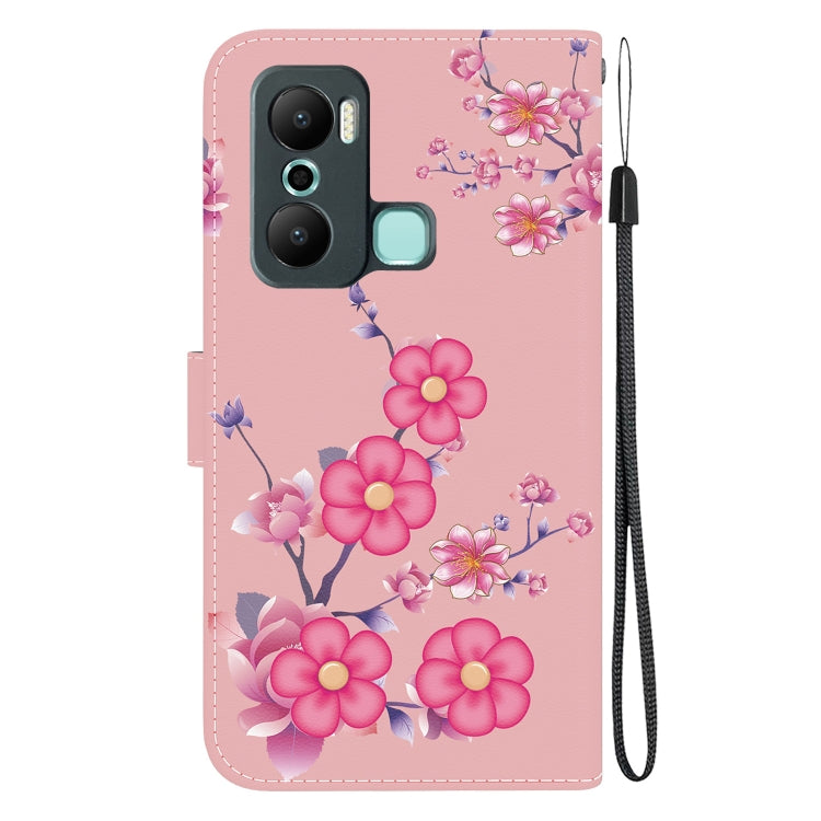 Estuche de Cuero para Infinix Hot 20 Play con Dibujo Coloreado y Textura de Cristal (Flores de Cerezo)