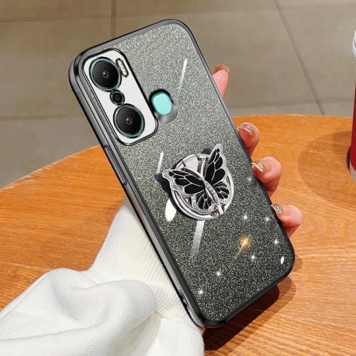 Funda para Infinix Hot 20 Play TPU con Soporte Mariposa y Brillo Degradado (Negro)