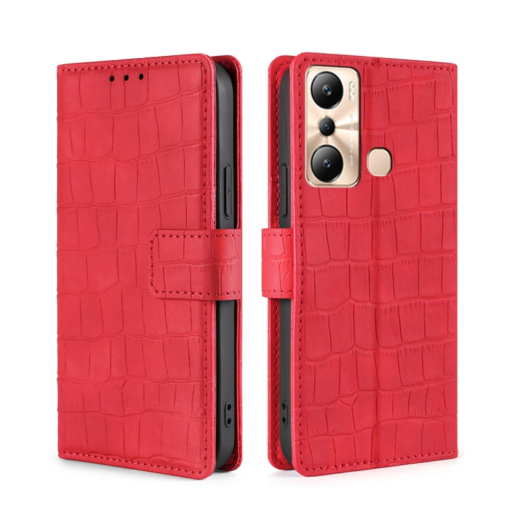 Funda de Cuero para Infinix Hot 20I Skin Feel Cocodrilo con Cierre Magnético (Rojo)
