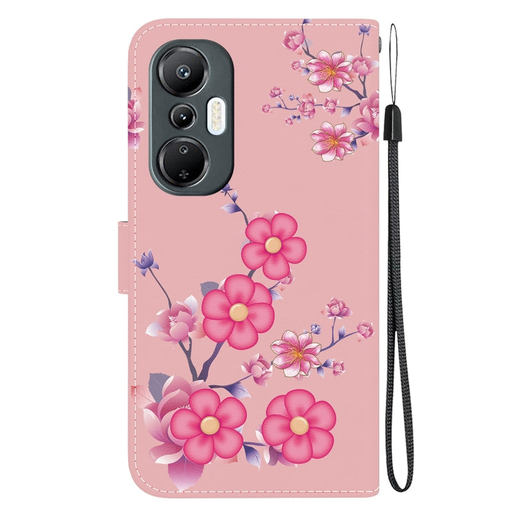 Estuche de Cuero para Infinix Hot 20S con Dibujo Coloreado y Textura de Cristal (Flores de Cerezo)