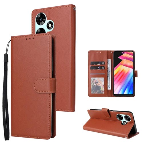 Funda para Infinix Hot 30 de Cuero Multifuncional con 3 Ranuras para Tarjetas (Marrón)