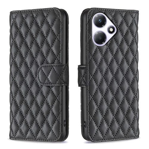 Funda de Cuero para Infinix Hot 30 Play NFC con Tapa y Diseño Diamond Lattice (Negro)