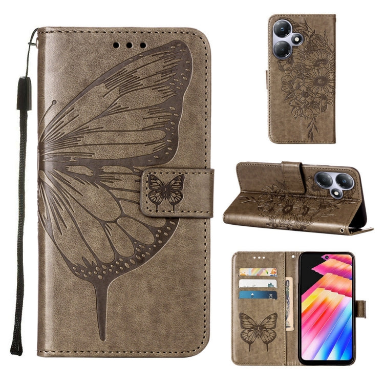 Estuche para Teléfono Infinix Hot 30 Play X6835 Cuero con Mariposa en Relieve (Gris)
