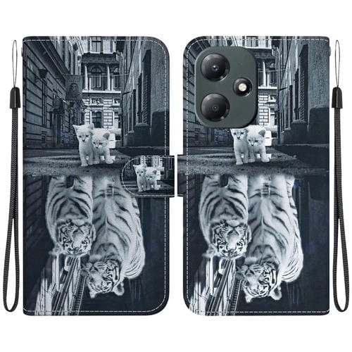 Funda de Cuero para Infinix Hot 30 Play X6835 con Dibujo Coloreado y Textura de Cristal (Reflejo de Tigre Gato)