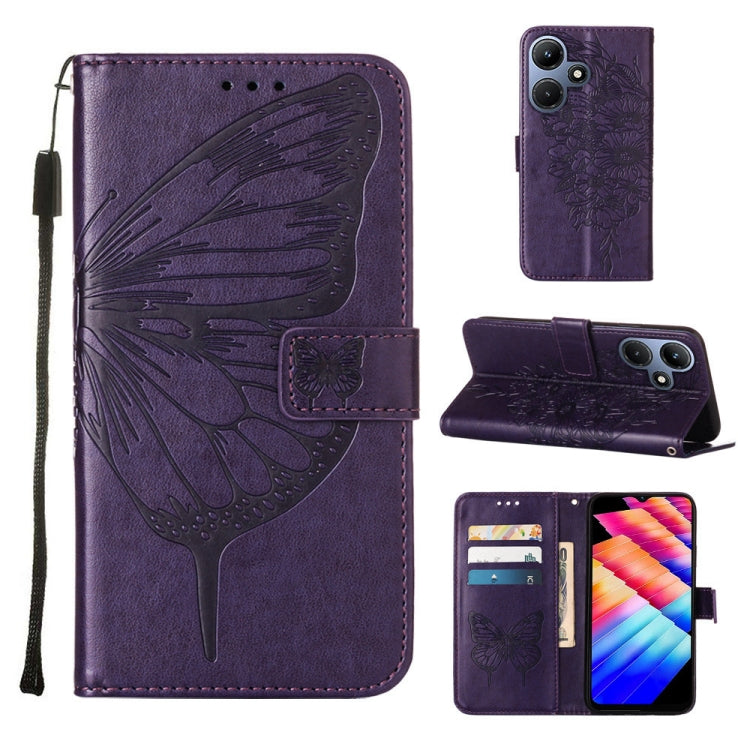 Estuche para Teléfono Infinix Hot 30I X669 de Cuero con Mariposa en Relieve (Púrpura Oscuro)