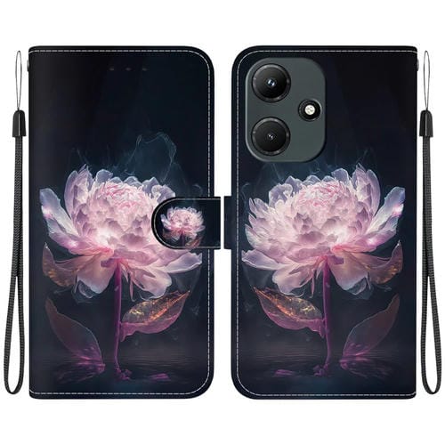 Funda de Cuero para Infinix Hot 30I X669C con Dibujo Coloreado y Textura de Cristal (Peonía Púrpura)