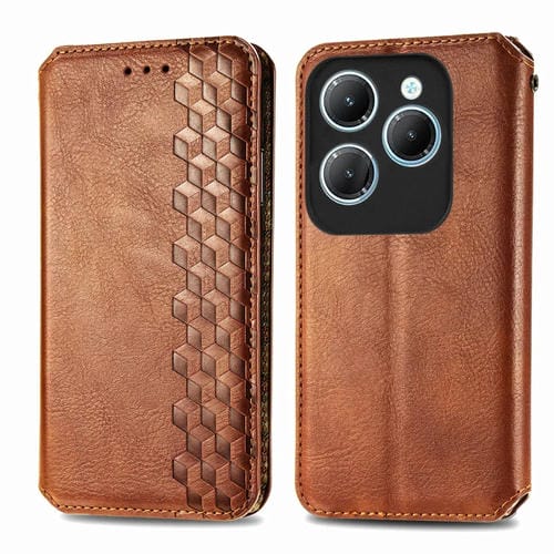Funda de Cuero Magnético Prensado para Infinix Hot 40 4G Cubic Grid (Marrón)