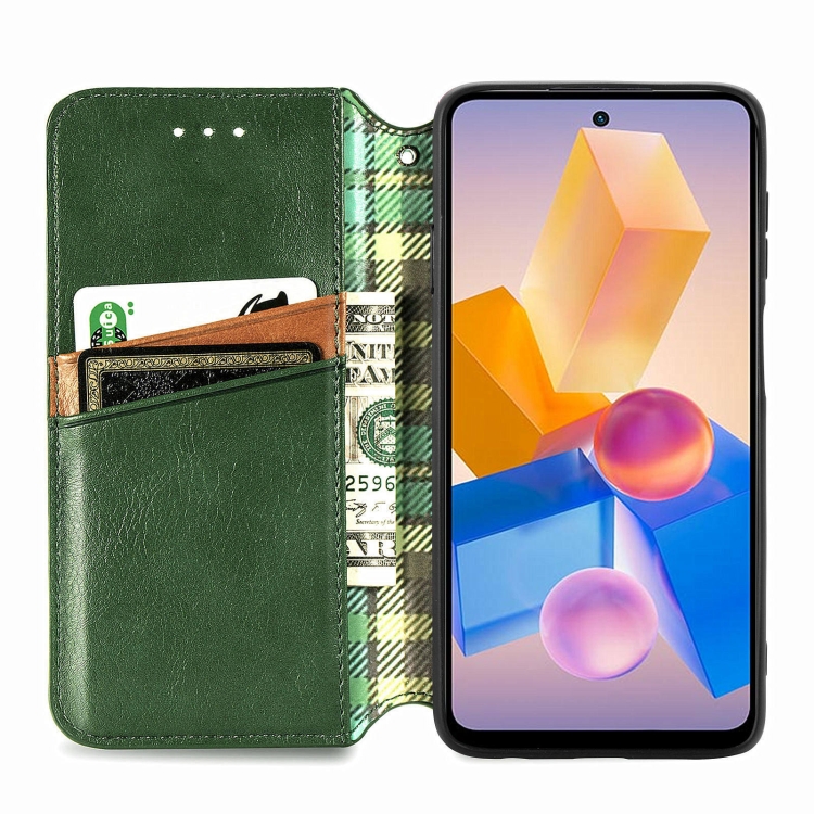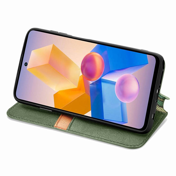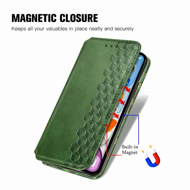 Funda de Teléfono Infinix Hot 40I Cubic Grid Cuero Magnético Prensado (Verde)