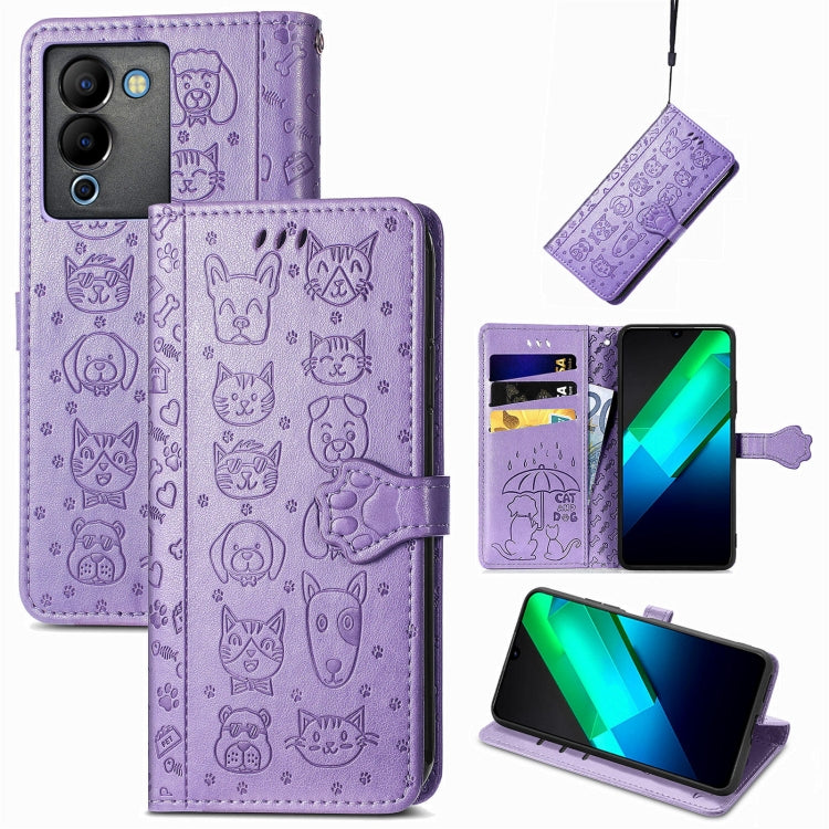 Funda de Cuero para Infinix Note 12 G96 Cat And Dog en Relieve (Púrpura)