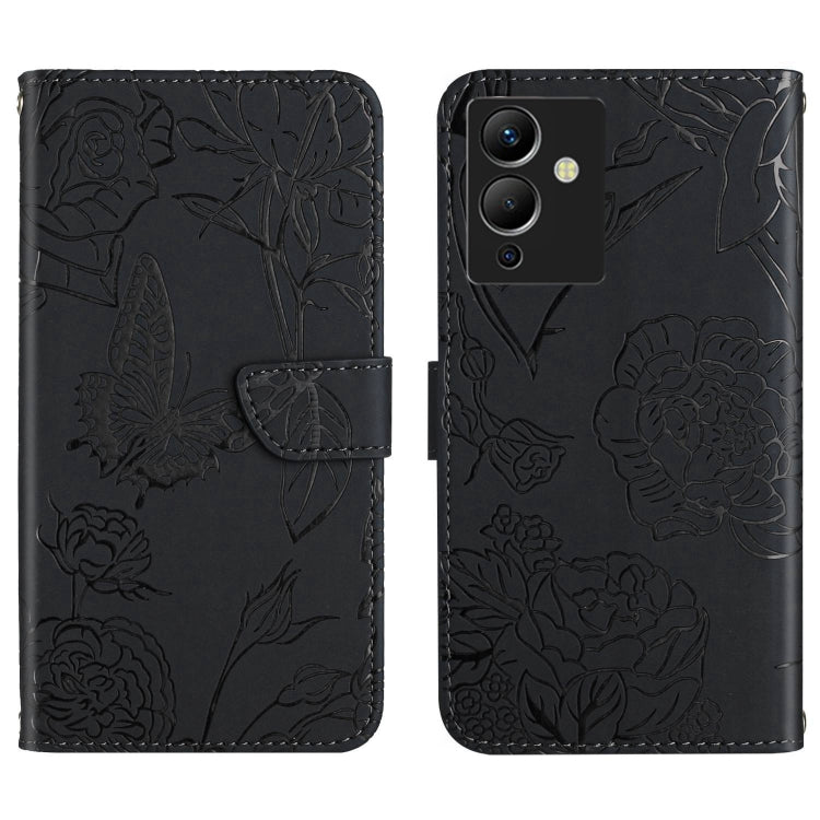 Funda de Cuero para Infinix Note 12 G96 Ht03 Skin Feel Butterfly con Tapa En Relieve (Negro)