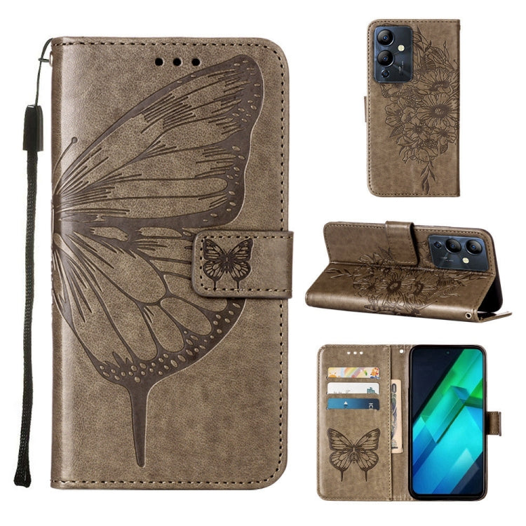 Estuche para Infinix Note 12I 2023 y G85 de Cuero con Mariposa en Relieve (Gris)
