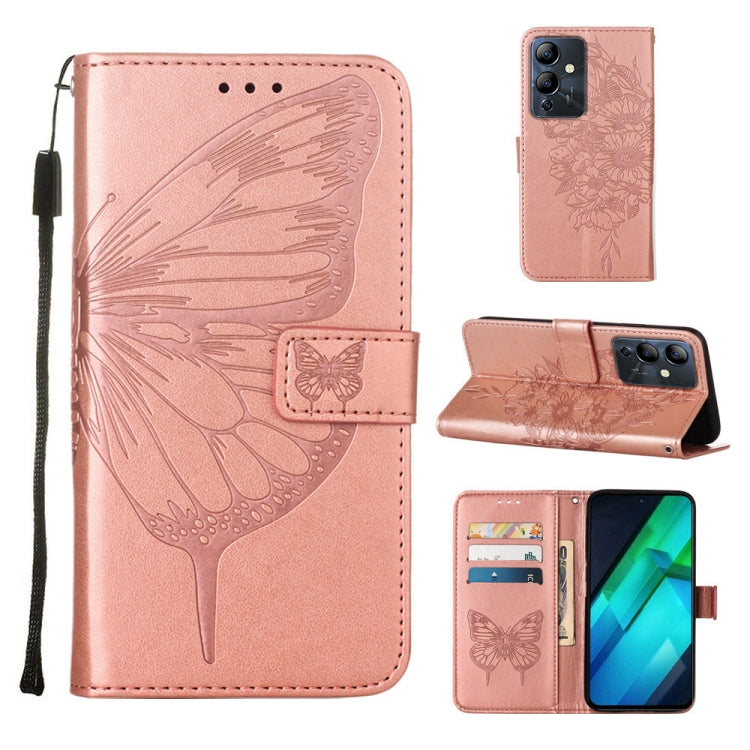 Estuche para Teléfono Infinix Note 12I 2023 G85 Cuero Mariposa en Relieve (Oro Rosa)