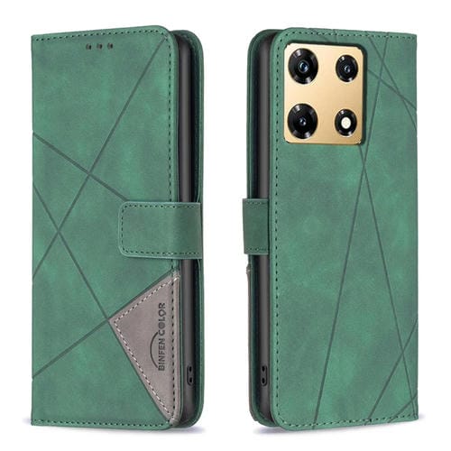 Funda de Cuero para Infinix Note 30 Pro con Textura de Rombo y Hebilla Magnética (Verde)