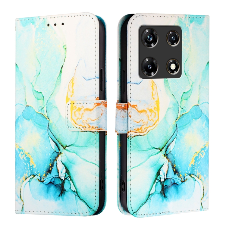 Funda de Cuero con Tapa para Infinix Note 30 Pro y Note 30 5G Pt003 con Patrón de Mármol (Verde)