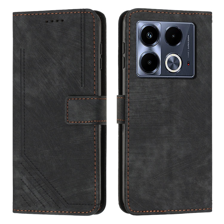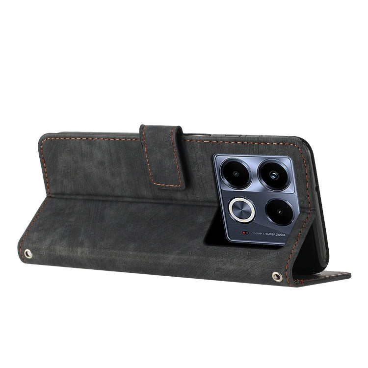 Funda de Cuero para Infinix Note 40 5G con Patrón de Rayas y Cordón (Negro)