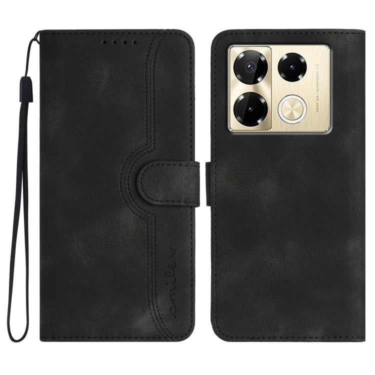 Funda de Cuero para Infinix Note 40 Pro 4G y 5G con Sensación de Piel y Patrón de Corazón (Negro)