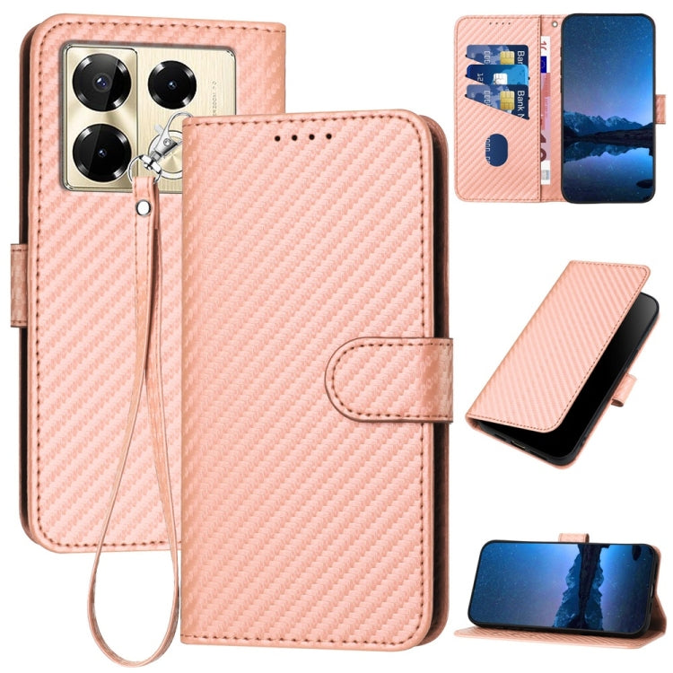 Funda de Cuero para Infinix Note 40 Pro 4G / 5G Yx0070 con Hebilla de Fibra de Carbono y Cordón (Rosa)