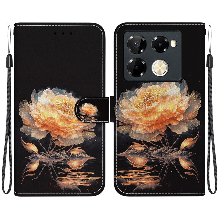 Funda de Cuero para Infinix Note 40 Pro + 5G con Dibujo Coloreado y Textura de Cristal (Peonía Dorada)