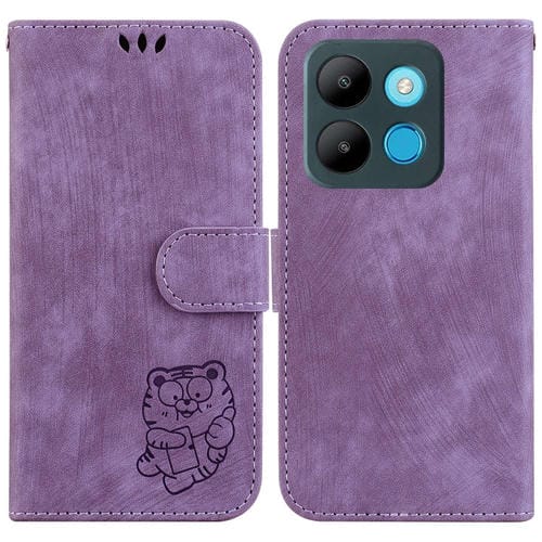 Funda para Teléfono Infinix Smart 7 African 6515 Cuero con Relieve Little Tiger (Púrpura)