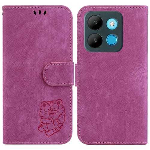 Funda para Infinix Smart 7 African 6515 de Cuero con Relieve Little Tiger (Rojo Rosa)