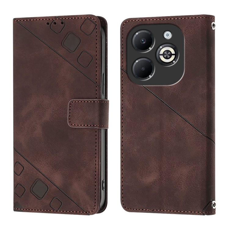 Funda de Cuero para Infinix Smart 8 Plus y Smart 8 Pro Skin Feel En Relieve (Marrón)