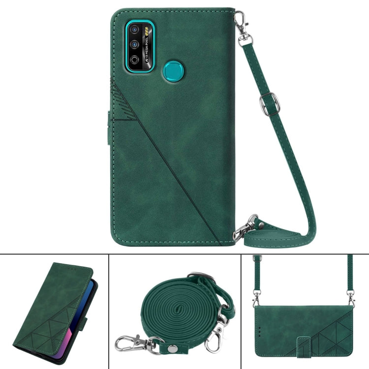 Funda de Cuero para Infinix X680 Hot 9 Play Crossbody 3D Grabado en Relieve (Verde Oscuro)