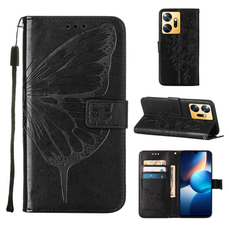 Estuche para Teléfono Infinix Zero 20 X6821 Cuero con Mariposa en Relieve (Negro)