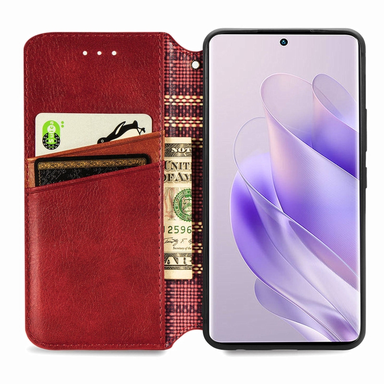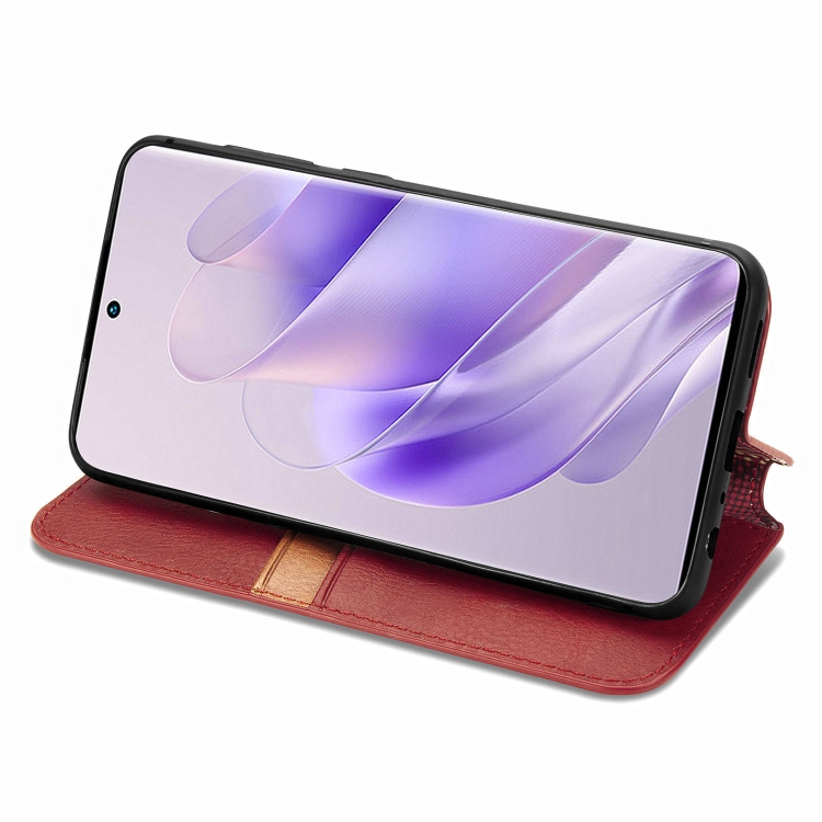 Funda de Teléfono Infinix Zero 30 4G Cubic Grid Cuero Magnético Prensado (Rojo)