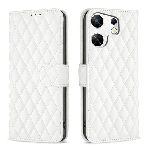 Funda de Cuero con Tapa para Infinix Zero 30 4G Diamond Lattice (Blanco)