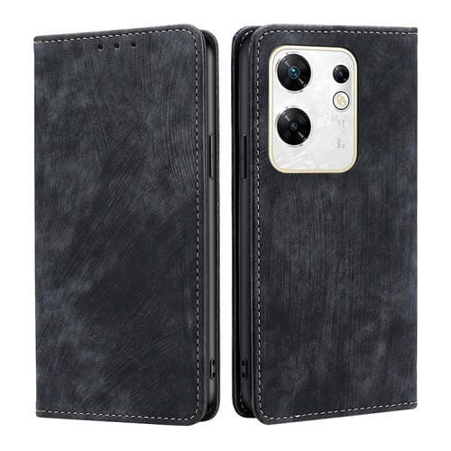 Funda de Cuero Magnético para Infinix Zero 30 4G con Rfid y Cepillo Antirrobo (Negro)