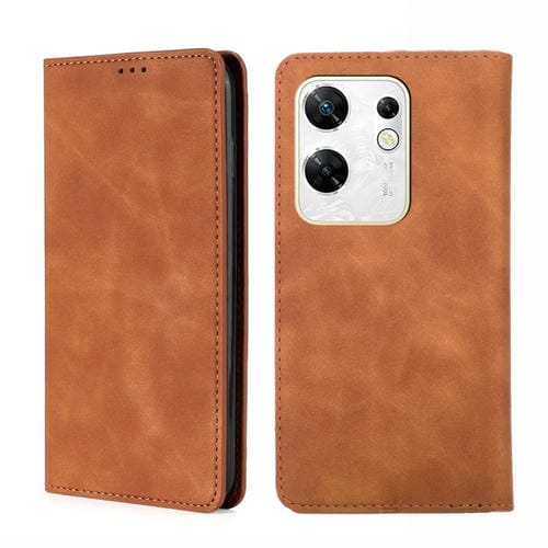 Funda de Cuero Magnética para Infinix Zero 30 4G Skin Feel (Marrón Claro)