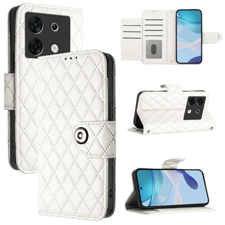 Funda de Cuero para Infinix Zero 30 5G con Tapa, Textura Romboidal y Cordón (Blanco)