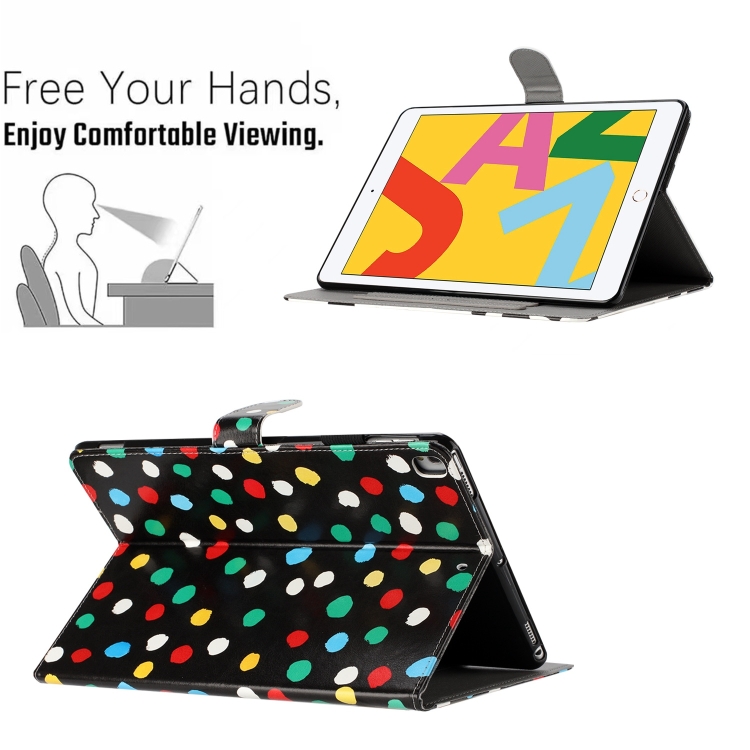 Funda para Tableta iPad 10.2 2021/2020 y 10.5 2019 Cuero Patrón de Puntos (Negro Colorido)