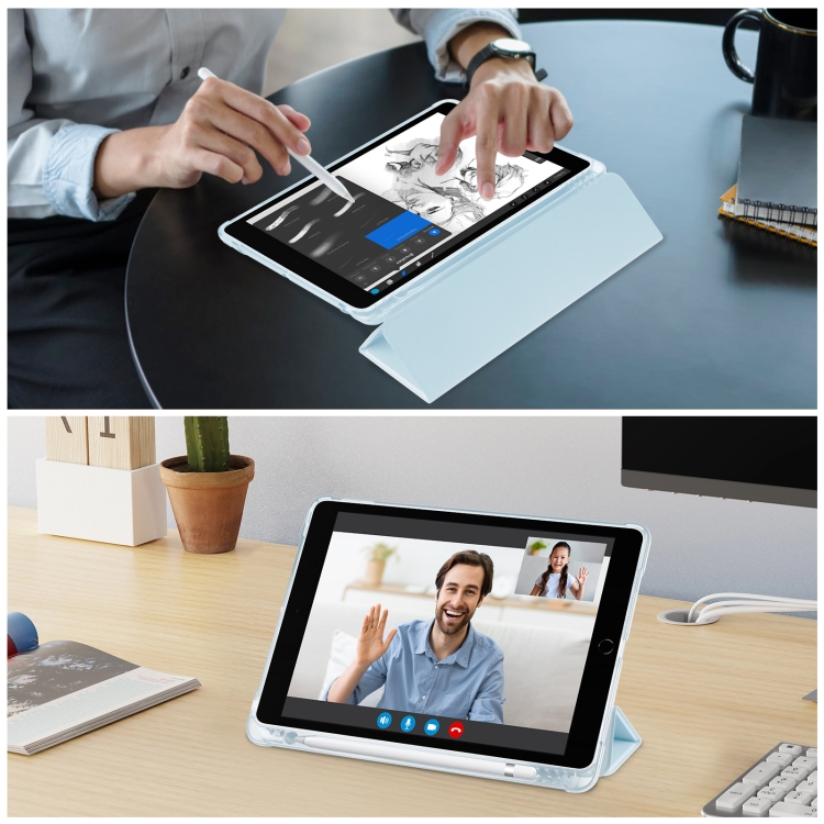 Funda para iPad 10.2 (2021/2020/2019) TPU con Soporte Triple y Ranura para Bolígrafo (Azul Cielo)
