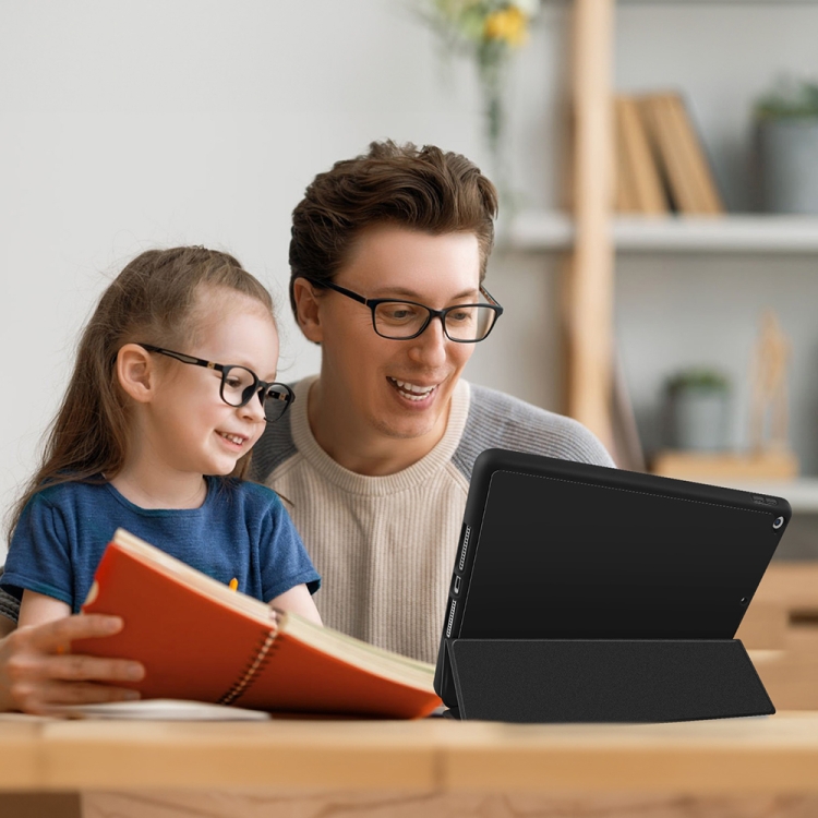 Funda para Tableta iPad 10.2 2021/2020/2019 Cuero Inteligente TPU 3 Pliegues con Ranura para Bolígrafo (Negro)